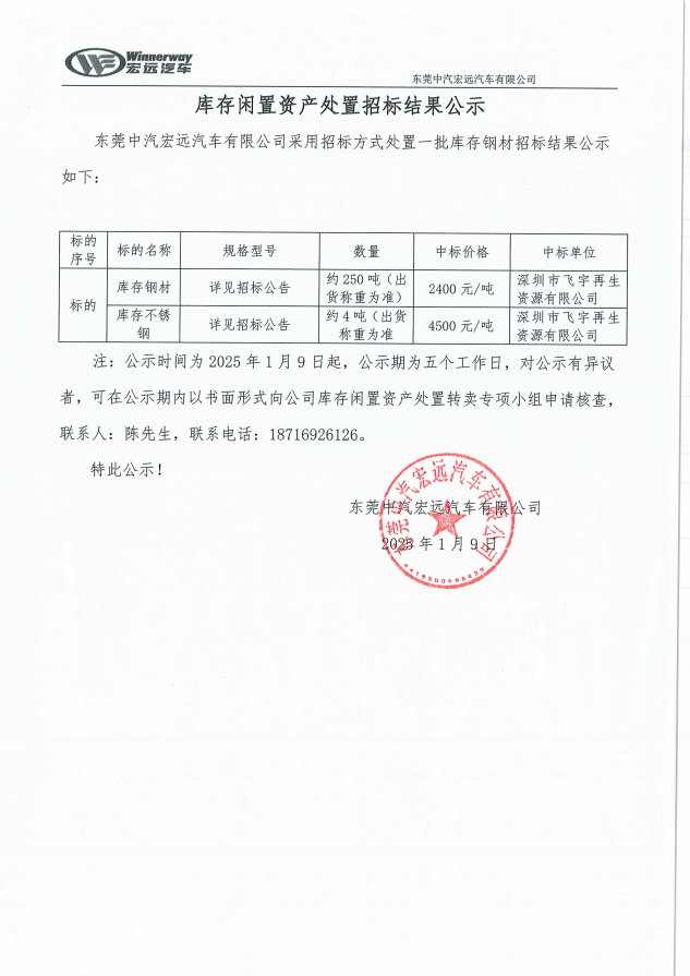 庫存閑置資產、售后廢舊件處置招標結果公示